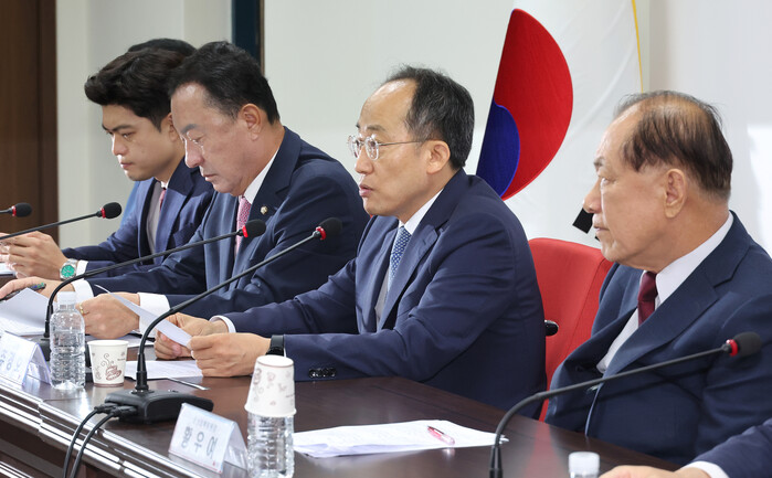 추경호 원내대표는 이날 여의도 당사에서 열린 비상대책위원회 회의에서 "아무런 근거 없이 탄핵을 추진하는 것은 무고죄"라며 "이재명 전 대표 등 민주당 인사를 수사했다는 이유로, 국회 입법권을 사적 보복에 동원하는 것은 입법권 남용"이라고 지적했다.