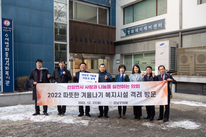 [시민일보 = 이대우 기자] 서울 강남구의회(의장 김형대)는 연말연시를 맞아 지난 27일 관내 복지시설인 대치노인복지센터, 수서명화종합사회복지관, 소망그룹홈(장애인공동생활가정)을 차례로 방문하여 성금을 전달하고 애로 사항을 청취하는 등 나눔정신을 실천했다.