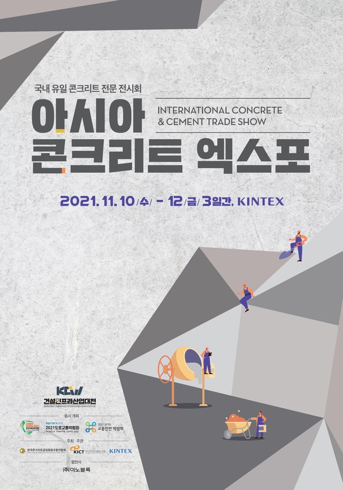 「2021 아시아 콘크리트 엑스포」는 「건설인프라산업대전」이라는 이름으로 「경기도 교통안전 박람회」, 「도로교통박람회」, 「한국국제건설기계전」과 동시에 개최되어 모든 전시회가 상호 자유롭게 출입할 수 있어 건설분야 연관산업간 교류를 통한 시너지 효과가 기대된다.