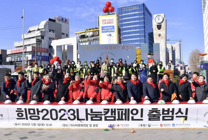[광주=정찬남 기자] 광주광역시(시장 강기정)는 광주사회복지공동모금회와 함께 1일 오전 동구 5·18민주광장에서 ‘희망2023 나눔캠페인’ 출범식을 하고 내년 1월31일까지 모금을 이어간다.