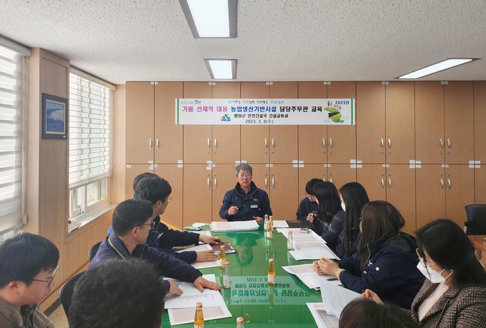 이날 교육은 관내 저수지(166개소), 양수장(43개소), 농업관정(183개소), 취입보(200개소) 등 농업생산기반시설에 대한 선제적 안전점검과 유지관리, 저수지 물가두기 등 농업용수의 안정적 확보를 위해 마련됐다.