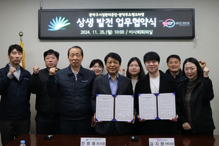 | ▲ 관악공단-관악푸드뱅크마켓 업무협약식 사진. (사진=관악구시설관리공단 제공) |