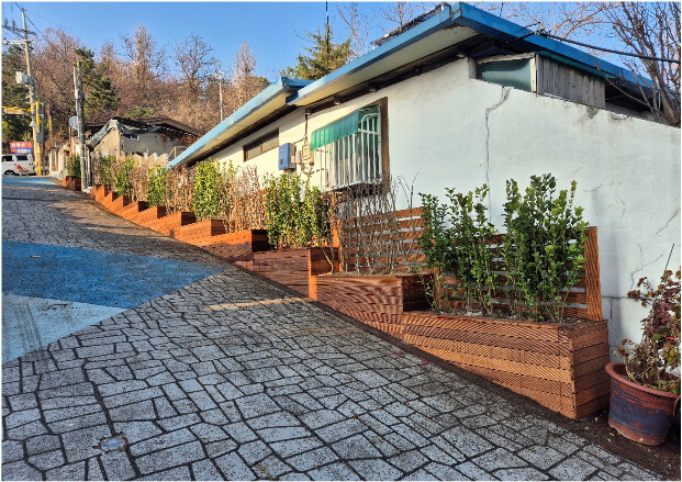 목재 플랜트를 설치해 수목을 심어 정원 공간을 조성하고, 앉음벽을 설치해 주민들이 편안하게 쉴 수 있는 휴게공간을 확충했다.