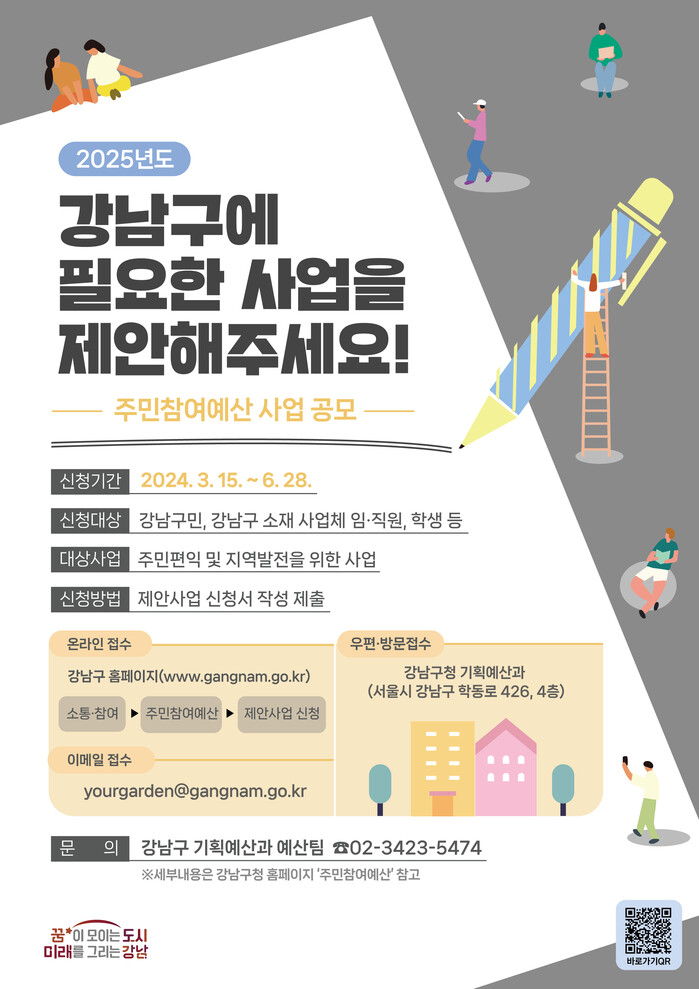 [시민일보 = 이대우 기자] 강남구(구청장 조성명)가 오는 6월28일까지 내년도 예산편성에 반영할 주민참여예산 제안사업 공모를 진행한다.