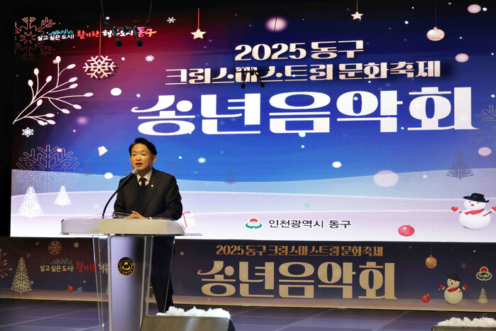 [인천=문찬식 기자] 인천 동구(구청장 김찬진)는 지난 19일 금요일 동구문화체육센터에서‘2025년 크리스마스 트리 문화축제 송년음악회’를 개최했다고 밝혔다.
