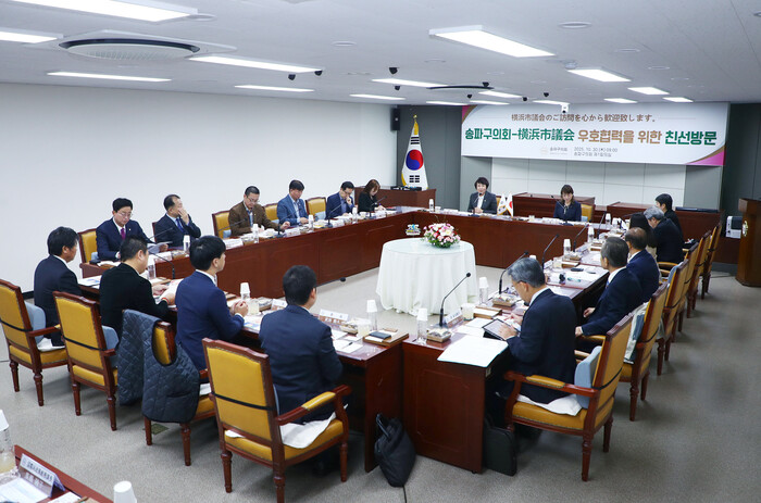 [시민일보 = 이대우 기자] 서울 송파구의회(의장 이혜숙)가 최근 구의회 제1회의실에서 송파구의회를 방문한 일본 요코하마시의회 대표단을 맞이해 환영 간담회를 개최했다.