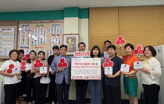 [인천=문찬식 기자] 인천 남동구 만수6동 행정복지센터는 나눔 문화 확산을 위해 인천사회복지공동모금회와 함께 착한 가게 단체 현판식을 진행했다고 밝혔다.