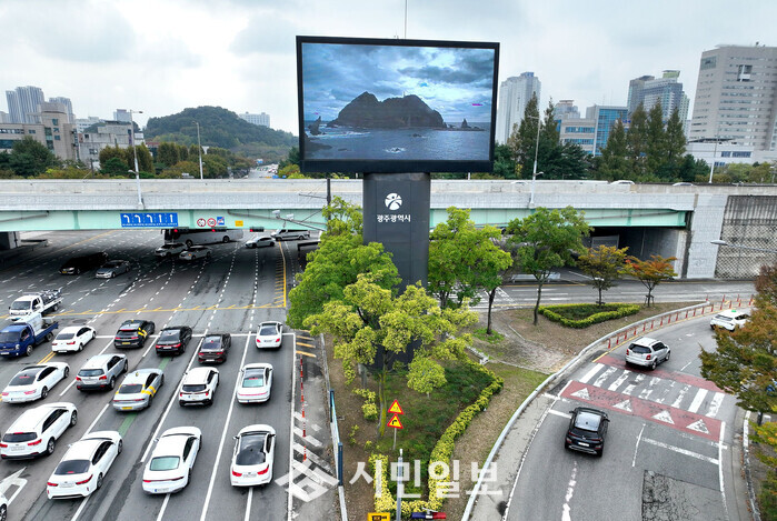 [광주=정찬남 기자] 광주광역시(시장 강기정)는 ‘독도의 날’인 지난 25일 오전 10시 25분부터 시정홍보 전광판에 ‘독도의 모습’을 실시간 송출했다.