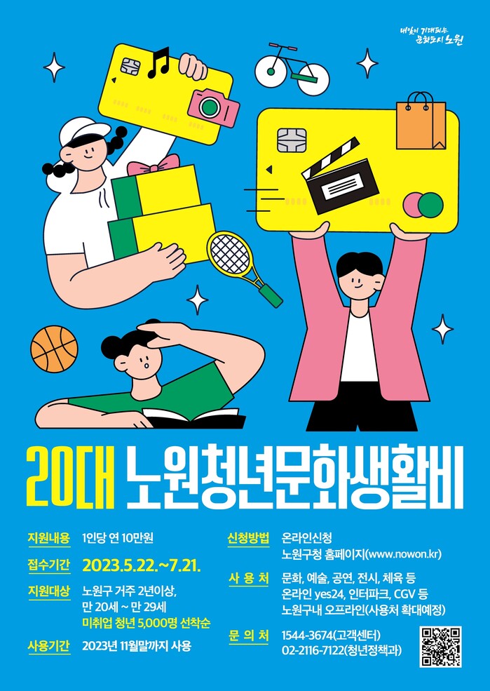 지원을 희망하는 청년은 '노원구 청년문화생활비 지원 카드' 홈페이지에서 신청하면 된다.