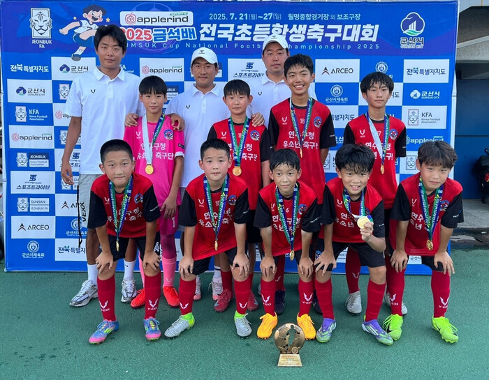 [인천=문찬식 기자] 인천 연수구청 유소년축구단(단장 이재호)이 지난달 21일부터 27일까지 전라북도 군산시에서 열린 ‘금석배 전국 초등학생 축구대회’에서 U-12(12세 이하)와 U-11(11세 이하)에서 각각 공동 우승을 차지하는 쾌거를 이뤘다.