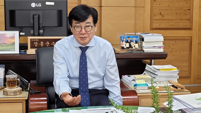 | ▲ 김 성 장훙군수가 자식 결혼 청첩장 발송과 관련해 직접 해명하고 공식 사과했다.(사진=황승순 기자) |