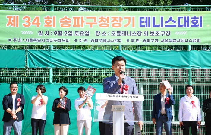 [시민일보 = 이대우 기자] 서울 송파구의회(의장 박경래)가 최근 송파구 오륜테니스장에서 열린 ‘제34회 송파구청장기 테니스대회’에 참석, 테니스대회 개최를 축하하고 선수들을 응원했다.