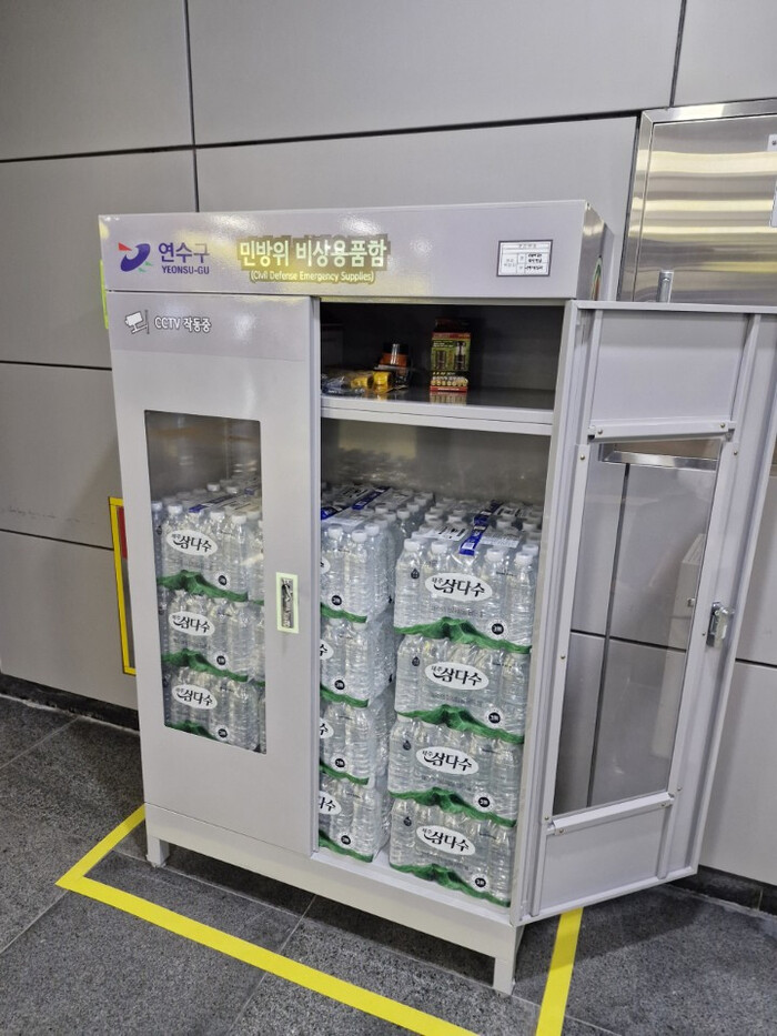[인천=문찬식 기자] 인천 연수구(구청장 이재호)는 인천시 자치구 가운데 최초로 지역 내 민방위 비상대피시설 10곳에 대형 비상용품함을 시범 설치했다.