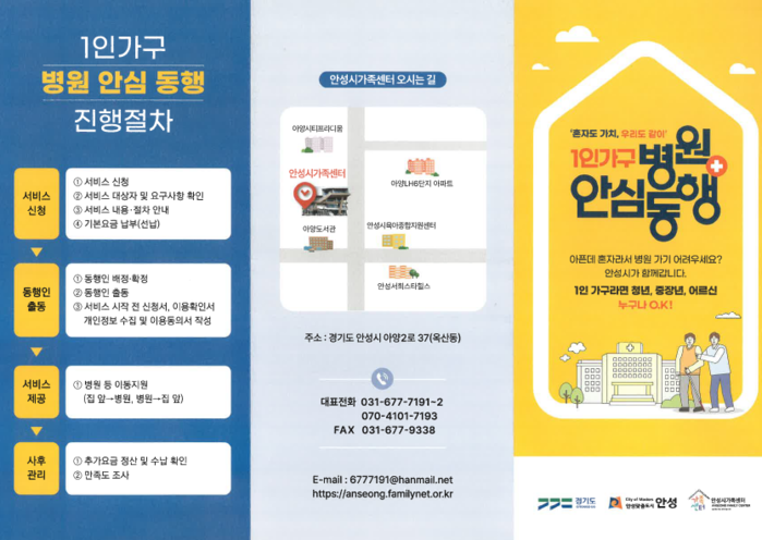 한편, 안성시는 병원 동행 서비스 외에도 정서 지원, 생활 돌봄, 사회관계망 회복 등 1인 가구의 안정적인 생활을 위한 다양한 정책을 지속 확대해 나가고 있다.