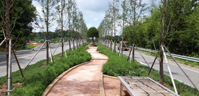 보성군은 앞으로 숲 중앙에 개설된 오솔길(2.1㎞)에는 송이사석과 마사토를 포설해 맨발로(路)을 만들 예정이다. 또한, 교통섬에 있는 쉼터 숲 공간에는 특색 있는 수목과 야생화를 식재하고, 쉼터 데크를 설치해 사업을 마무리할 계획이다.