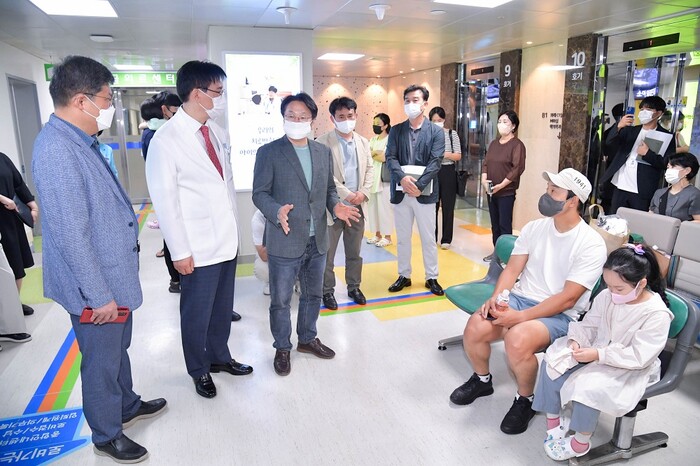 | ▲ 강기정 광주광역시장이 지난해 9월 24일 저녁 지역 유일 공공심야어린이병원인 광주기독병원을 방문, 어린이 환자와 가족들을 격려하고 있다./광주광역시 제공 |