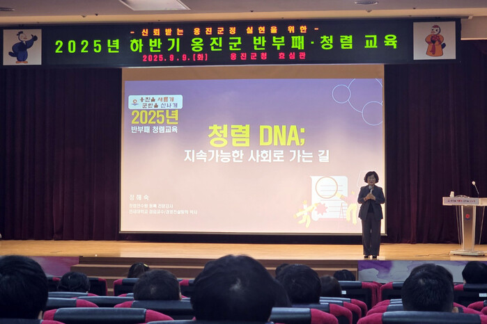 [인천=문찬식 기자] 인천 옹진군(군수 문경복)은 지난 9일, 군청 효심관에서 전 직원을 대상으로‘2025년 하반기 반부패·청렴교육’을 실시했다고 밝혔다.