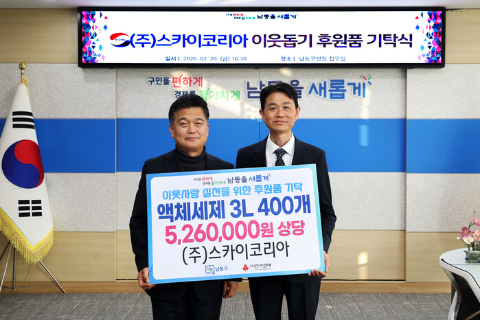 박종효 남동구청장은 “지역사회를 위한 따뜻한 나눔을 실천해주신 ㈜스카이코리아에 감사드린다”라며 “후원품은 도움이 꼭 필요한 곳에 소중히 전달하겠다”라고 말했다.
