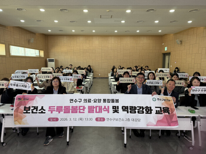 [인천=문찬식 기자] 인천 연수구(구청장 이재호)는 지난 12일 연수구보건소에서 보건소 전 직원이 참여하는 의료·요양 통합돌봄사업 ‘두루돌봄(春)’ 발대식과 직무교육을 개최하고, 보건소 중심의 통합돌봄 사업을 본격적으로 추진한다.