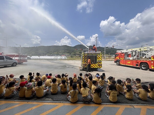 안전의식 함양을 위해 마련된 이번 교육은 어린이들이 직접 소화기를 분사하고 구급차, 펌프차 동승체험 및 소방서 견학하는 방식으로 이뤄졌다.