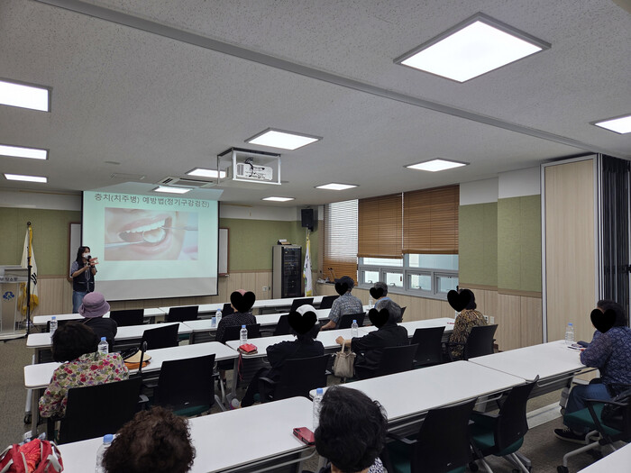 교육 내용은 ▲치주질환, 치아우식 예방을 위한 올바른 구강 관리 방법 ▲구강건조증 예방을 위한 입체조 방법 ▲틀니, 임플란트 등 구강 내 보철 관리방법 ▲정부 지원사업 및 보건소 이용 안내 등으로 구성됐다.