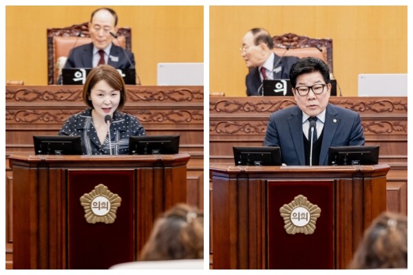 | ▲ (왼쪽부터) 김상희 의원, 이동길 의원이 구정질문을 하고 있다. |