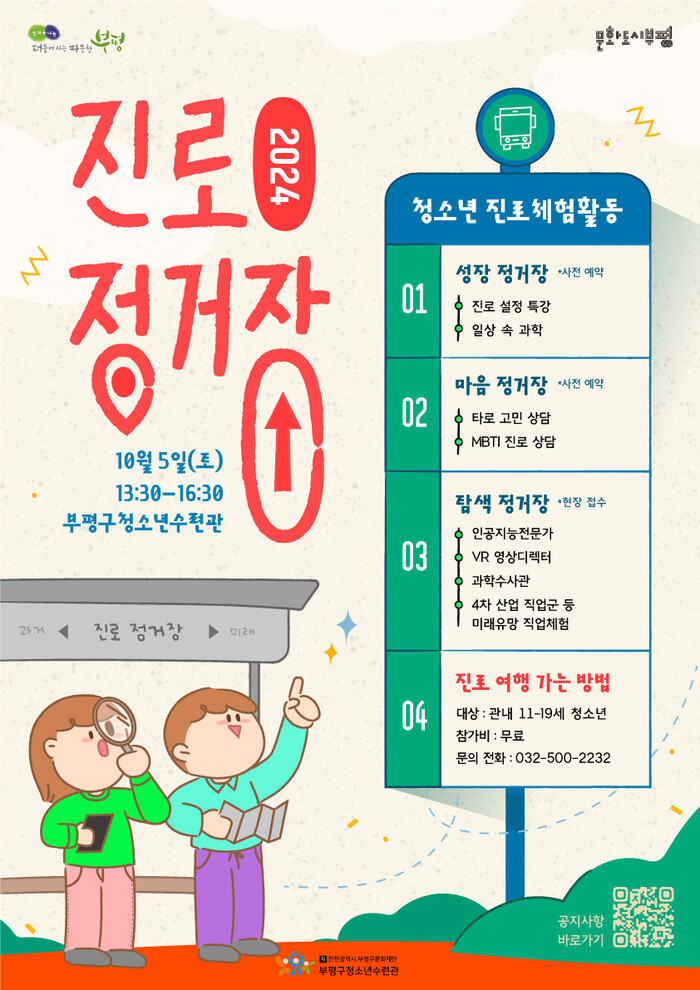 [인천=문찬식 기자] 인천 부평구 청소년수련관이 오는 10월5일 청소년수련관 한꿈마당에서 청소년진로체험활동 ‘진로 정거장’을 개최한다.