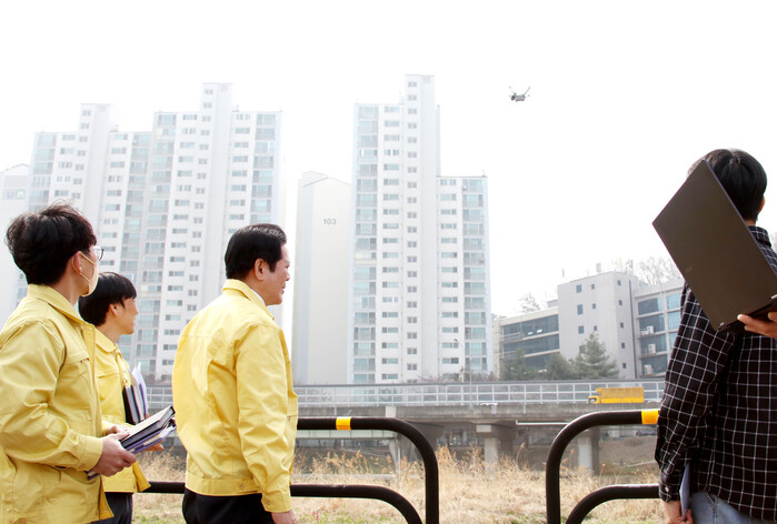 이번 점검 중 드론 정책으로는 시 청사내 ‘드론 통합상황실’에서 현장에 나가지 않고도 드론을 원격 제어하는 고도화된 운영 체계가 선보였다.