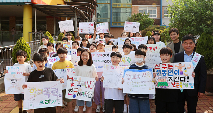 특히, 캠페인 참여 학생들이 각자 직접 준비한 폭력 예방 표어를 들고 등교하는 친구들에게 학교폭력 근절의 메시지를 전달했다.