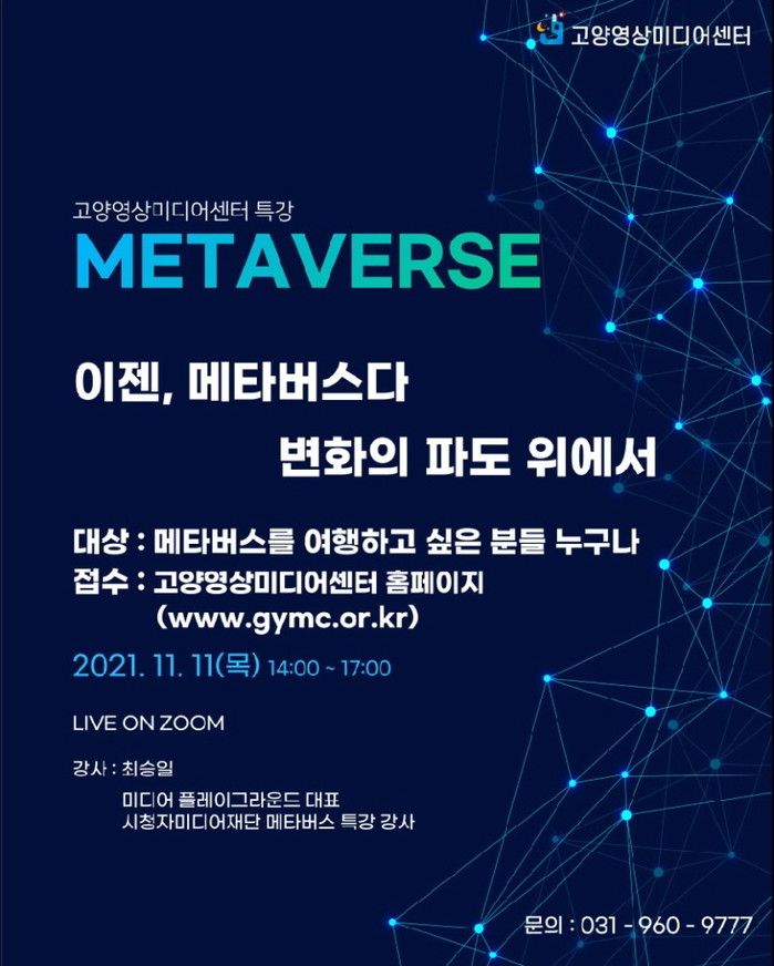 메타버스에 대해 이해하고 싶은 시민은 누구나 수강할 수 있으며 강의 신청은 고양영상미디어센터 홈페이지에서 하면 된다.
