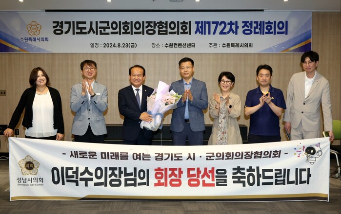 [성남=오왕석 기자] 성남시의회 이덕수 의장이 향후 2년 동안 경기도시·군의회의장협의회를 이끌게 됐다. 경기도시·군의회의장협의회는 23일 수원컨벤션센터에서 열린 제172차 정례회의에서 제16기 경기도시·군의회의장협의회장으로 성남시의회 이덕수 의장을 선출했다.