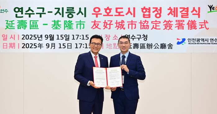[인천=문찬식 기자] 인천 연수구(구청장 이재호)와 대만 지룽시(시장 셰궈량謝國樑)가 우호도시 협약을 체결하고, 해양도시 간 국제 교류사업을 본격화했다.