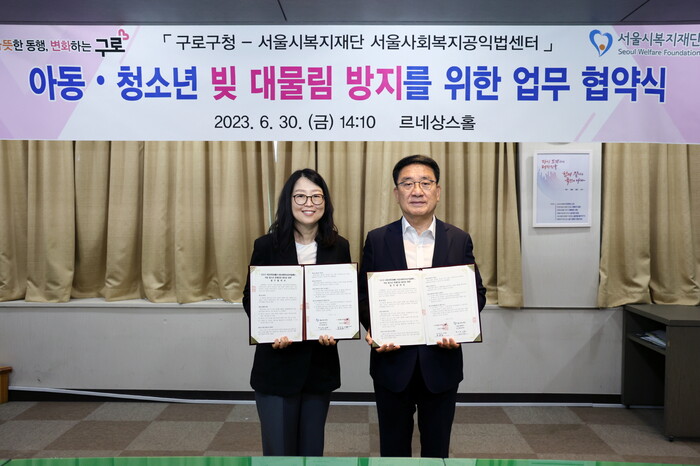 [시민일보 = 이대우 기자] 서울 구로구(구청장 문헌일)가 서울시복지재단 서울사회복지공익법센터와 ‘아동·청소년 빚대물림 방지를 위한 업무 협약’을 체결했다고 3일 밝혔다.