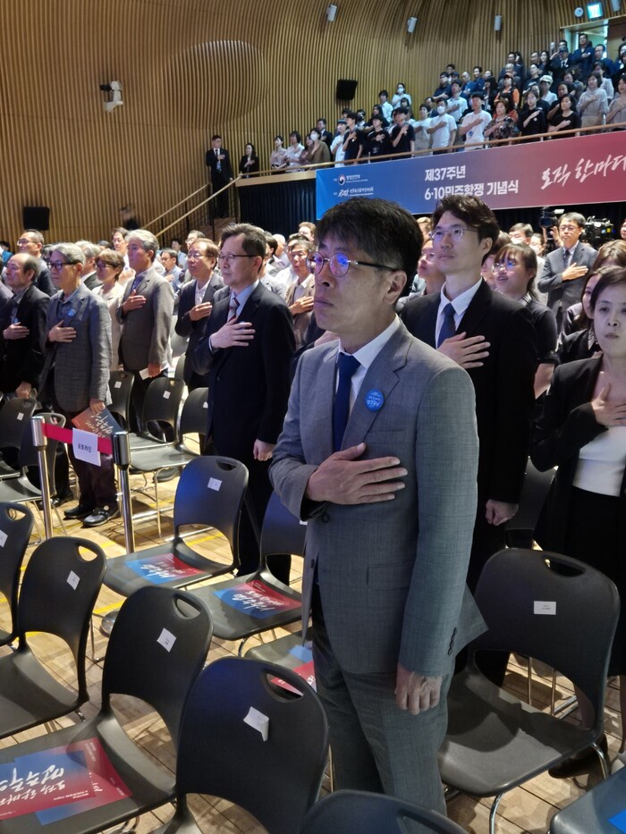[평택=오왕석 기자] 평택시의회 유승영 의장은 10일 서울시청 8층 다목적홀에서 열린 ‘제37주년 6·10민주항쟁 기념식’에 참석했다.