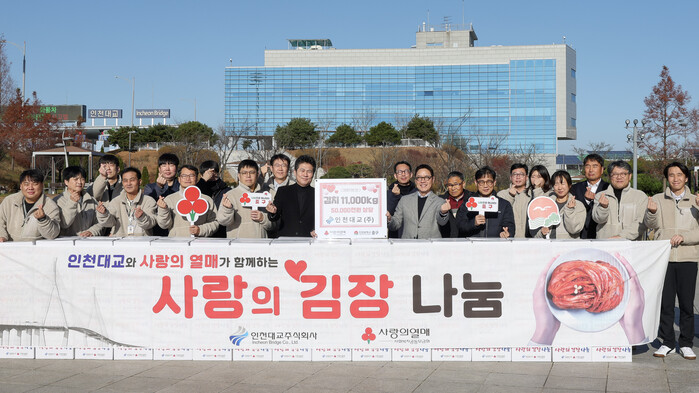 이번 행사는 인천대교㈜가 연말을 맞이해 지역 사회에 대한 책임을 다하고자 마련된 것이다. 김치는 인천사회복지공동모금회를 통해 경로당 98개소와 저소득 취약계층 808가구 등에 전달됐다.