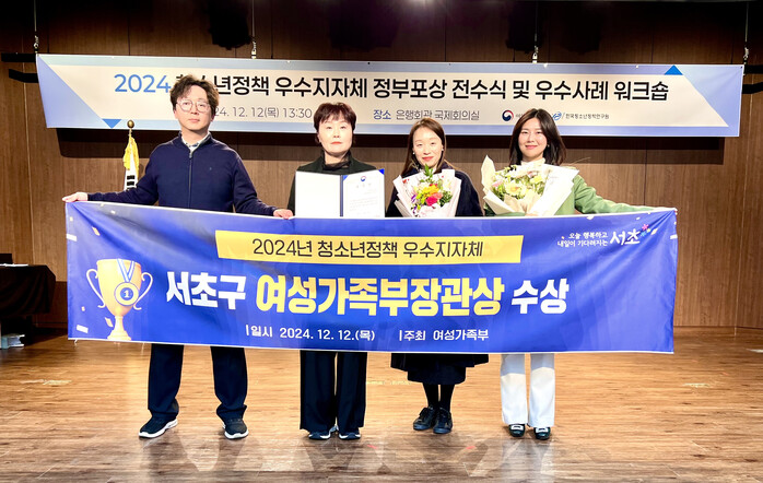 [시민일보 = 박소진 기자] 서초구(구청장 전성수)가 올 한해 아동‧청소년 분야에서 우수한 정책을 펼쳐 ‘2024년 청소년정책 우수지자체’로 선정, 여성가족부 장관 표창을 받는 쾌거를 이뤘다고 16일 밝혔다.