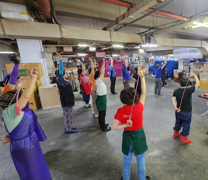 | ▲ 시장상인들과 함께하는 건강 스트레칭 (사진=동대문구청 제공) |