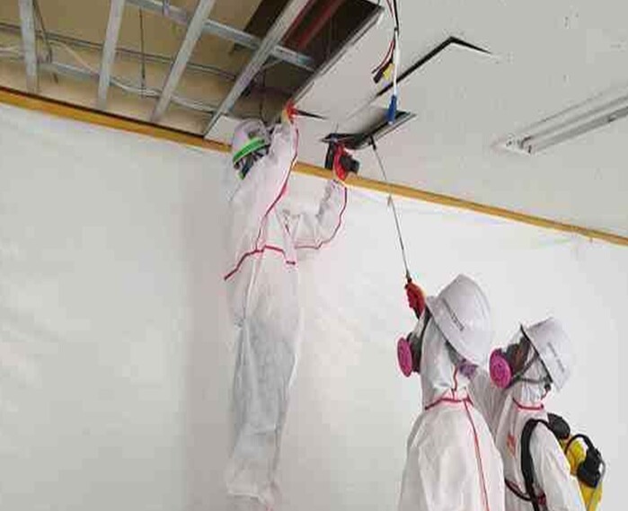 | ▲ 석면 해체·제거업자가 석면 자재(천장텍스)를 제거하는 모습. (사진=영등포구청 제공) |