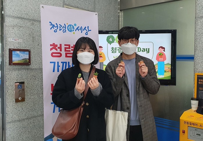 이 날은 식목일을 맞아 청사 1층 로비에서 출근하는 직원들에게 청렴 화분을 나눠주며, 푸른 다육이처럼 청렴한 마음을 다짐하는 시간을 가졌다.