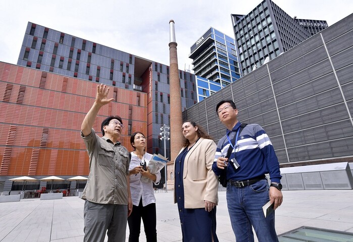 대표단은 섬유공장의 커다란 굴뚝이 보존된 미디어파크 광장, 리모델링을 통해 대학·도서관으로 탈바꿈한 폐공장, 공공기여로 조성된 녹지(공원), 공유자전거 시설, 친환경 건축물과 22@의 랜드마크인 아그바타워 등을 둘러봤다.