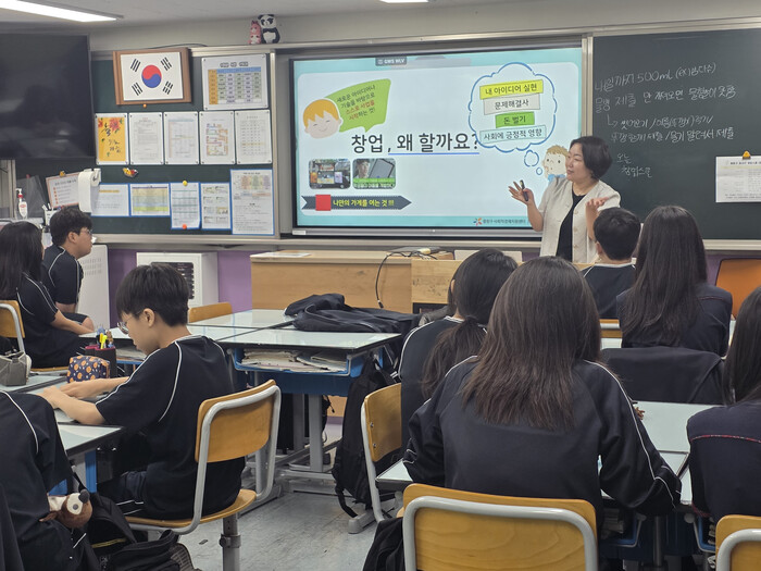 [시민일보 = 여영준 기자] 서울 중랑구(구청장 류경기)가 지난 25일 신현중학교 1학년 전체 학생 160명을 대상으로 청소년 창업스쿨 ‘창창한 중랑’을 운영했다.