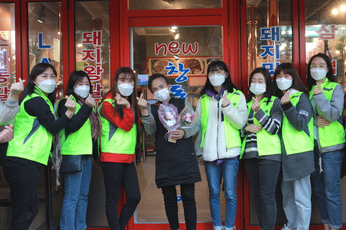 ▲ 지난해 '우리 마을 탄소중립 실천가게'에 선정된 가게 사장과 '2050 탄소중립 실천단'이 기념촬영을 하고 있다. (사진제공=도봉구청) |