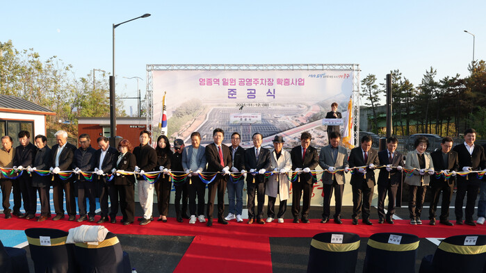 인천 중구는 지난 12일 오후 영종역 제2공영주차장에서 김정헌 중구청장, 배준영 국회의원, 임관만 시의원, 구의원, 인천공항철도㈜ 사장, 지역주민 등 200여 명이 참석한 가운데 ‘영종역 일원 공영주차장 확충사업 준공식’을 열었다.