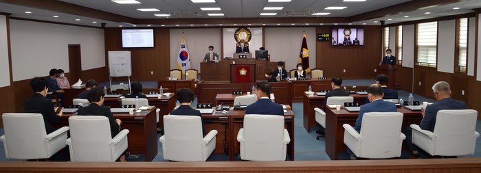 이날 개의된 제1차 본회의에서 선거 결과, 전반기 의장에 조삼술의원(나선거구, 국민의힘), 부의장에 성종태의원(라선거구,국민의힘), 의회운영위원장에 이태련의원(비례대표,국민의힘), 복지행정위원장에 신경자의원(라선거구,더불어민주당), 산업건설위원장에 이한신의원(무소속)이 선출됐다.