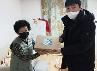 | ▲ 구 관계자가 지역내 홀몸노인에게 '한파키트'를 전달하고 있다. (사진=서대문구청 제공) |