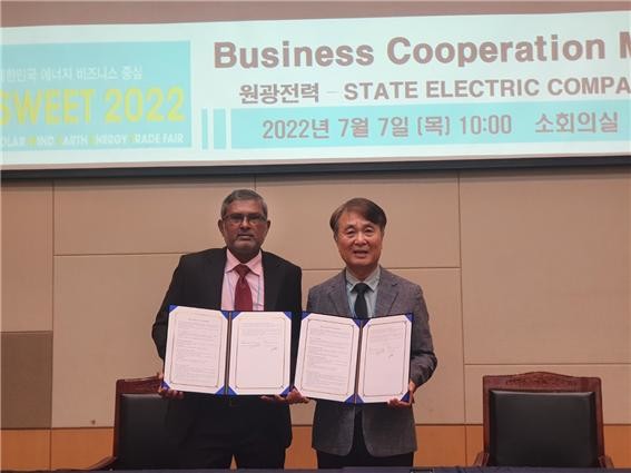 원광전력은 SWEET 2022 전시회에 몰디브 국영전력사 주요 간부들을 초청해 업무 협약을 체결했다. 업무 협약을 통해 마이크로그리드 수요자 관리를 포함한 ESS 기반 에너지 신산업 및 전기, 신재생에너지 산업 발전 등에 관한 공동사업에 협력하기로 했다.