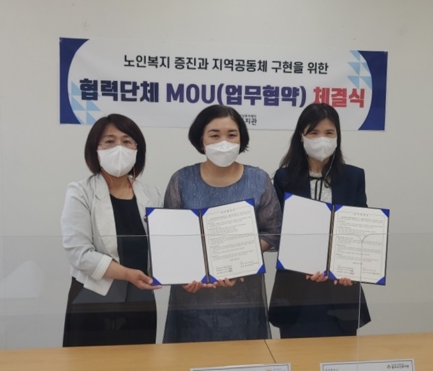 경기 수원시 영통구 광교2동 지역사회보장협의체와 광교노인복지관이 18일 광교2동의 노인복지 증진을 위한 업무협약을 체결했다. 협약을 통해 광교2동 지역사회보장협의체와 광교노인복지관은 지속적인 노인복지사업을 실천하기로 했다. 사진은 협약식에서 관계자들이 기념촬영을 하는 모습. (사진제공=영통구청)