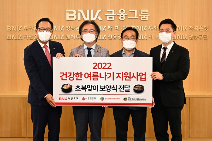 부산은행은 지역 노인복지관 및 종합사회복지관 50곳에 부산사회복지공동모금회를 통해 삼계탕과 육개장이 포함된 보양식 2500세트를 전달할 예정이다.