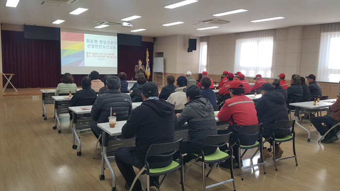 [인천=문찬식 기자] 인천 강화군 화도면(면장 조순이)은 지난 21일 화도면 소속 현업근로자를 대상으로 근로자의 안전사고를 예방하고, 근로자의 건강을 보호하기 위해 안전보건교육을 진행하였다.