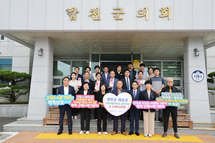 조삼술 합천군의회 의장은 “소중한 기부금이 주민 복리를 위한 재원 마련에 큰 힘이 될 것이라고 기대하며 기부를 결심했다”며 “고향사랑 기부제가 지역사회에 성공적으로 안착하고 더욱 확산할 수 있도록 합천군과 화순군에 지속적인 관심과 성원을 당부드린다”고 전했다.